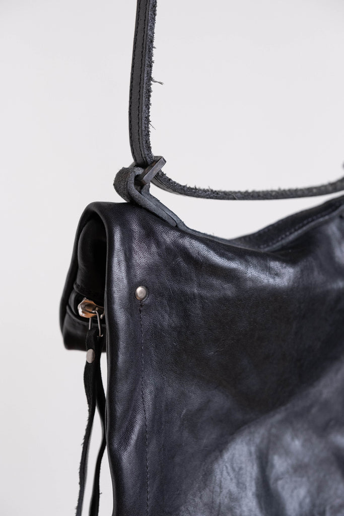 This is the small version of the folded messenger bag. With its small size, it's perfect to use every day to carry your small goods. This bag is made from an oiled horse shoulder and adjustable bull leather strap. After construction, the bag is wrinkled and molded to give it an aged appearance.