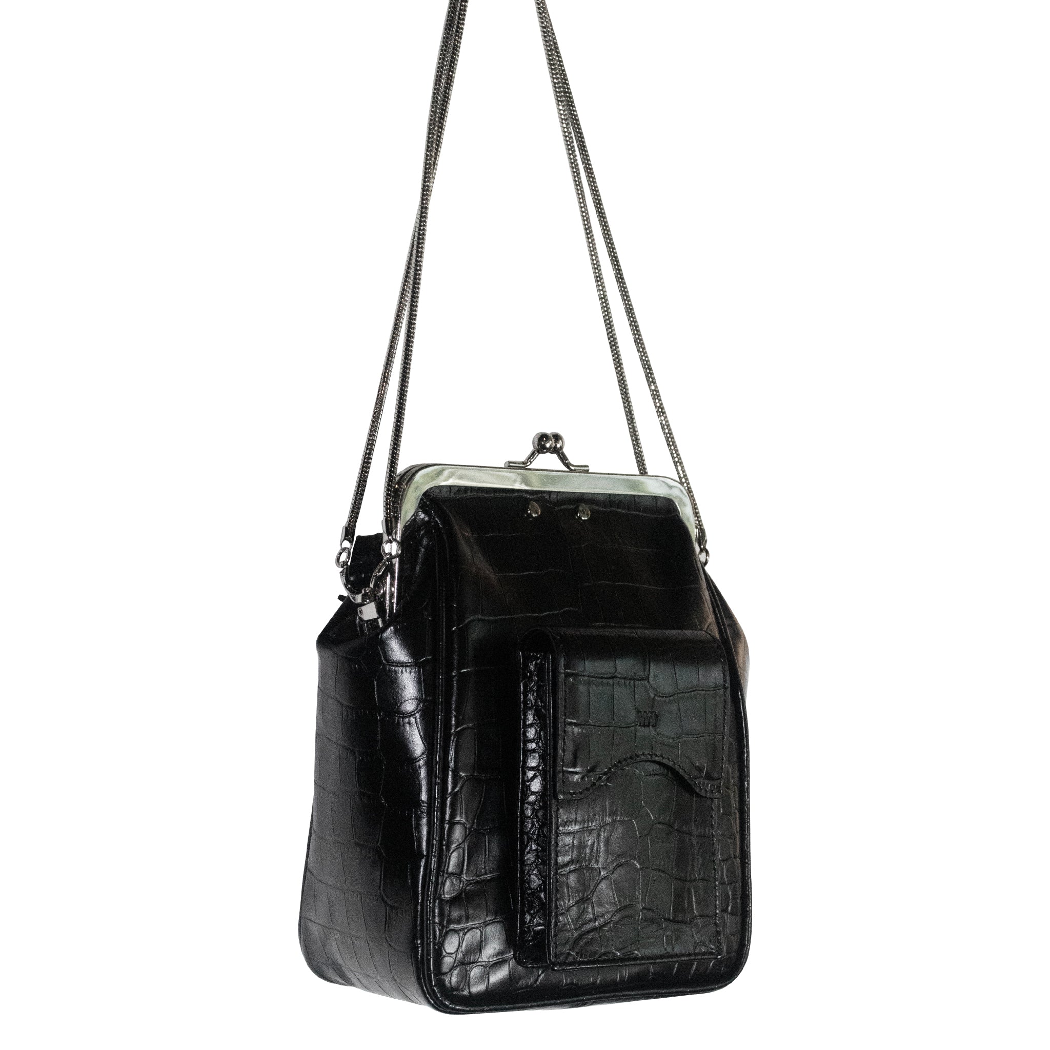 Seokwoon Yoon Black Croc Mini Square Pocket Bag